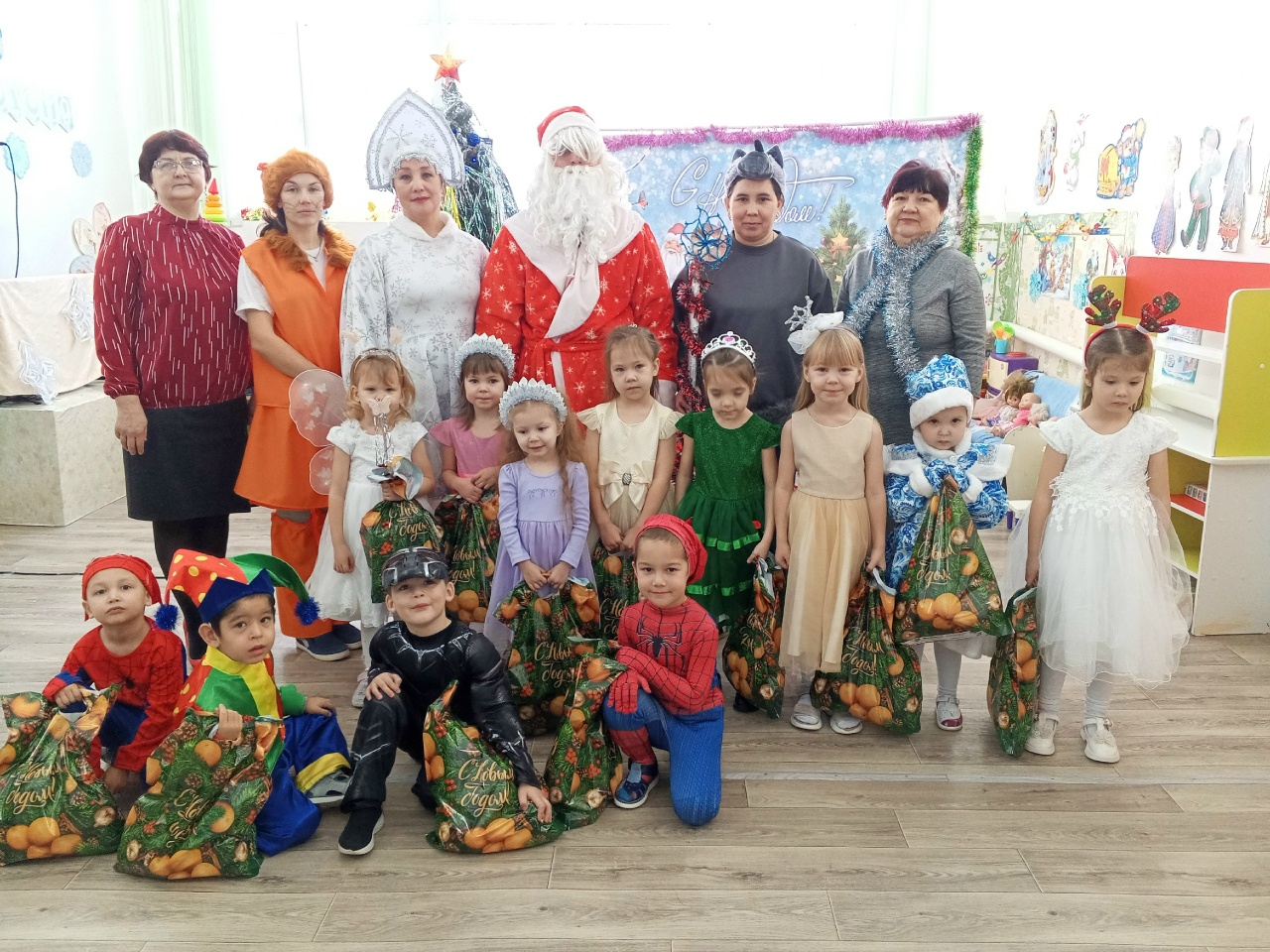 В завершение утренника Дед Мороз и Снегурочка порадовали всех детей сладким подарком